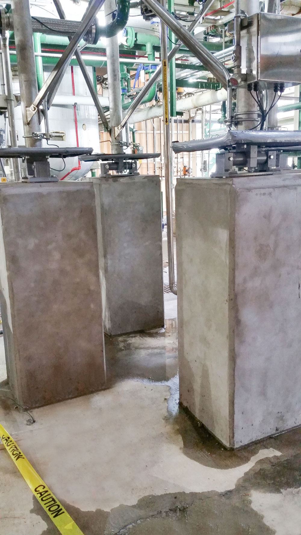 Working with SSR, Inc., a local engineering firm, Ram Jack Tennessee experts determined the loads required to support the tanks and designed an ideal layout for the helical pile installation. The height of the building limited the type of installation equipment that could be used as well as the deep foundation system that could be installed. In order to make up for these limitations, Ram Jack proposed the use of 2 7⁄8 in. threaded connection helical piles along with 3 1⁄2 in. diameter, 5 ft. long external sleeves. This combination would resist the 2000 lb. lateral loads on the piles without having to use larger diameter piles or install tieback anchors, saving the client both time and money without compromising the structural integrity needed to support the tanks.