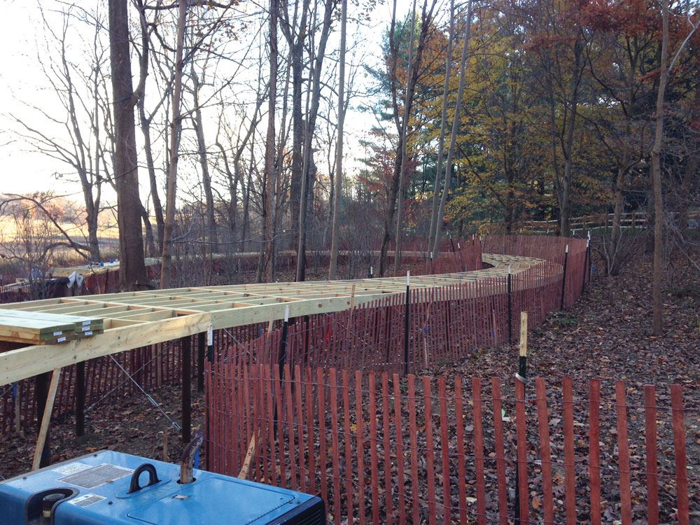 Problem: Longwood Gardens desired to construct a nature preserve trail that connects some of the various attractions on their grounds. The elevated trail would need support and strength in addition to an aesthetic consistent with the surrounding beauty. Complicating the issue was the desire to construct the trail with as little disruption as possible to the indigenous plants and natural environment of the protected wetlands.