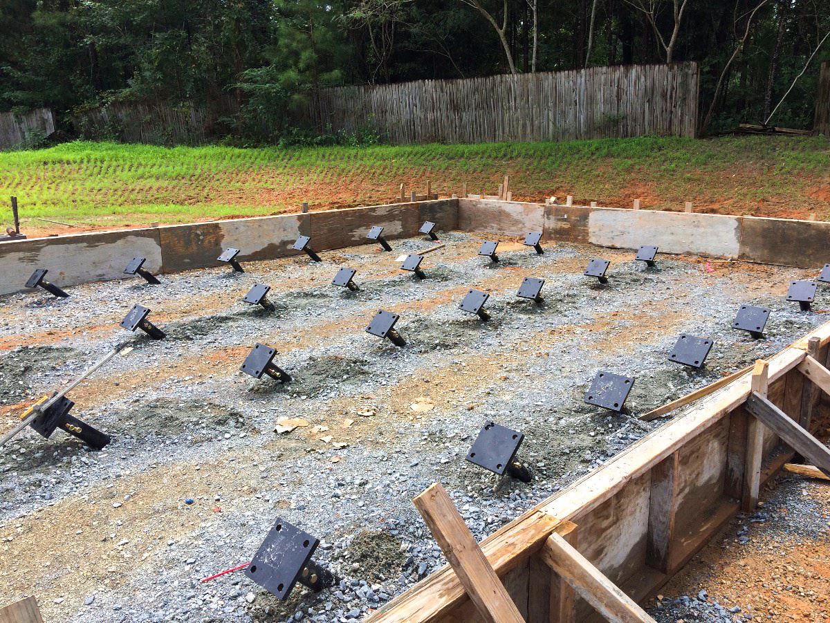 The engineer of record (EOR) suggested using a smaller concrete slab anchored by helical piles. The hope was that this would reduce the amount of concrete required. Initially, the EOR wanted 20 piles per slab with a working load of 90 kips per pile. Accommodating 90 kips per pile would require installing 5.5 in. dia. piles.