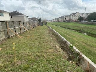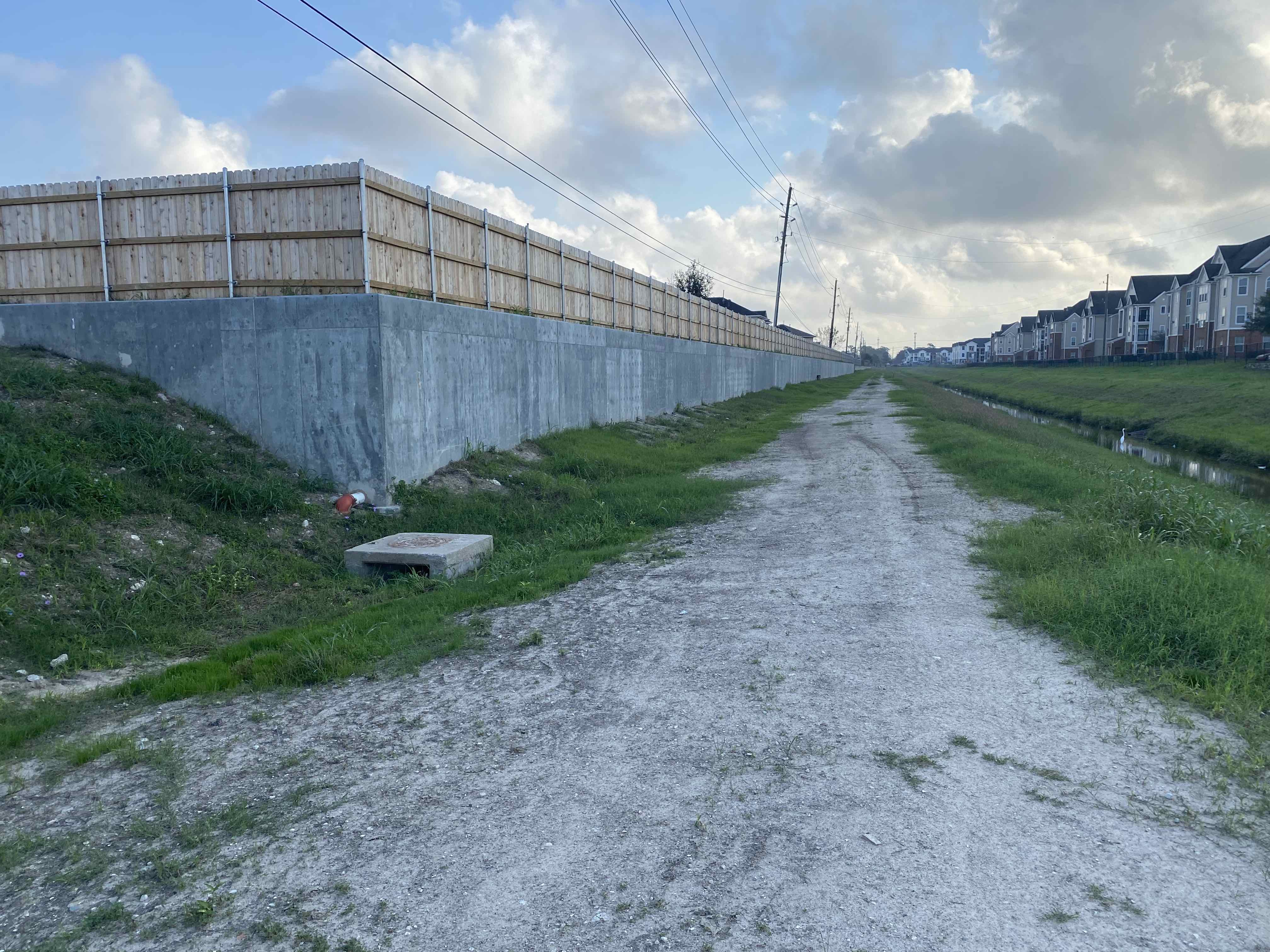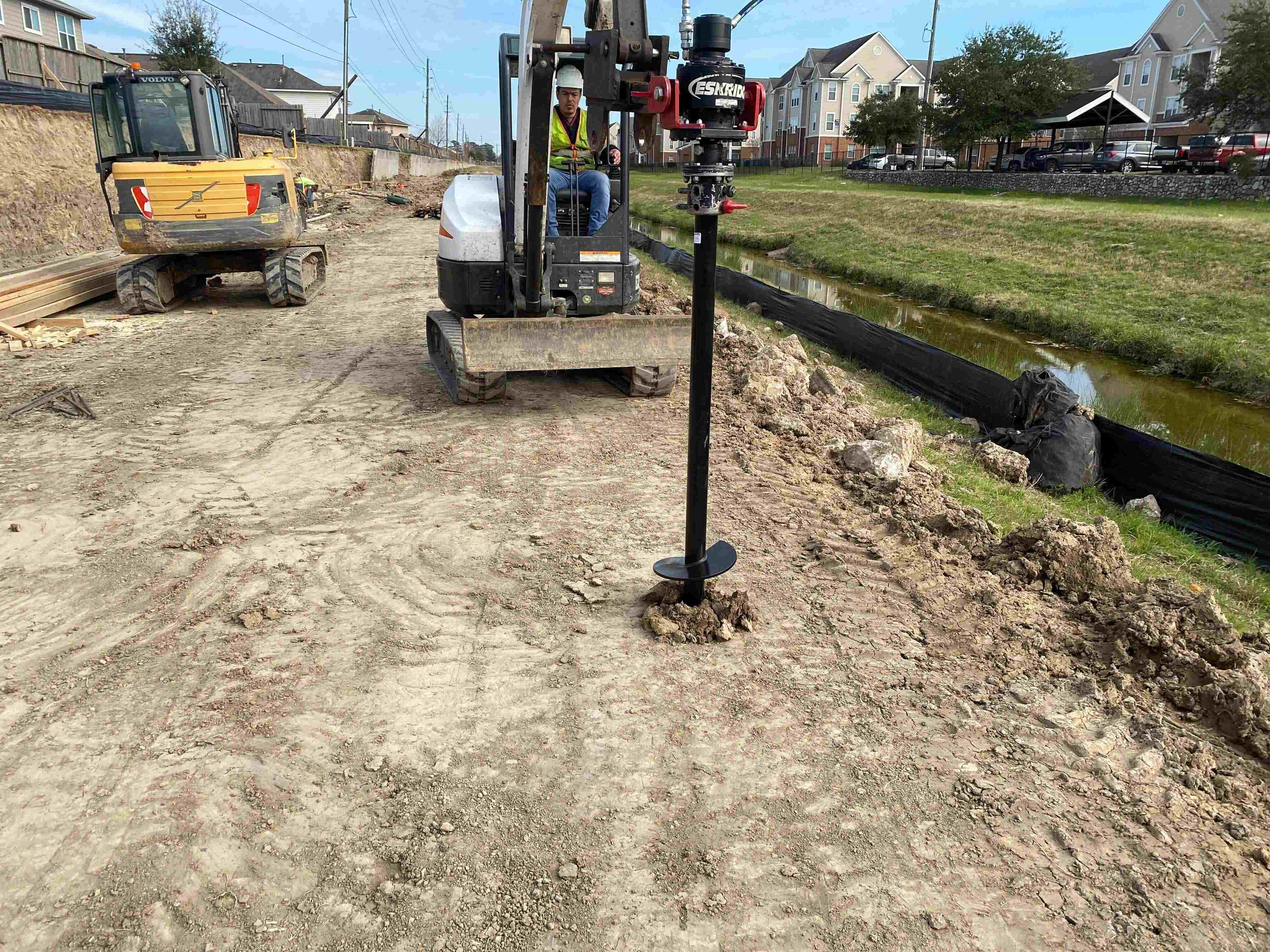 The Sunset Wall (Mud 49) project was a 750 ft. retaining wall that failed behind a residential subdivision near a creek. Stiver Engineering along with Benchmark Engineering contacted Ram Jack to assist in the design of the new retaining wall. Fortified Engineering was brought in for the helical design and installation depth for the New Construction piles and Tie-Backs. Full-scale load tests were performed to determine the ultimate pile capacity and torque correlation factor respective to the site. During the design phase, two of the homeowners stated they did not want the Tie-Back to extend under their home. Fortified Engineering designed the degree angle and load for the Tie-Backs in question.